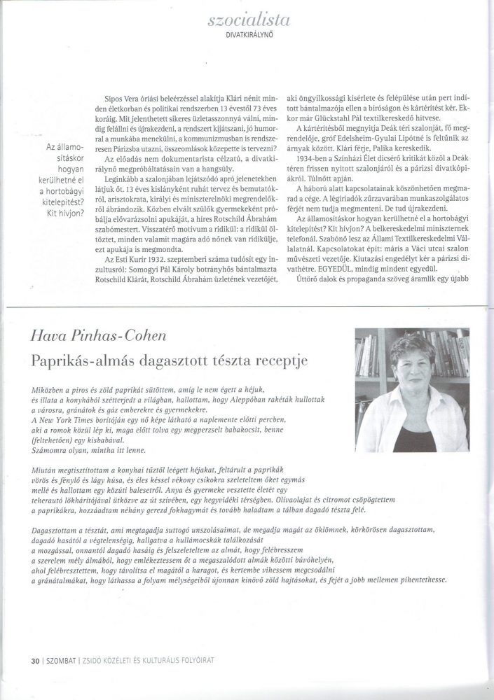 בספטמבר הוזמנתי לקונגרס שירה עולמי בבודפשט. המשורר המארח אישטואן טורצי Istevan Turczi , משורר בעל שורשים יהודיים, שתורגם בעבר על ידי איתמר יעוז קסט, סיקרן ומסקרן אותי מאד. לשמחתי עוד ברגעים הראשונים להיכרותנו, הניח לפני את כתב העת Szombat ובו תרגום של השיר: "מתכון פלפלים, בצק ותפוחים". מתוך הספר: "וחצי תאוותי בידו".